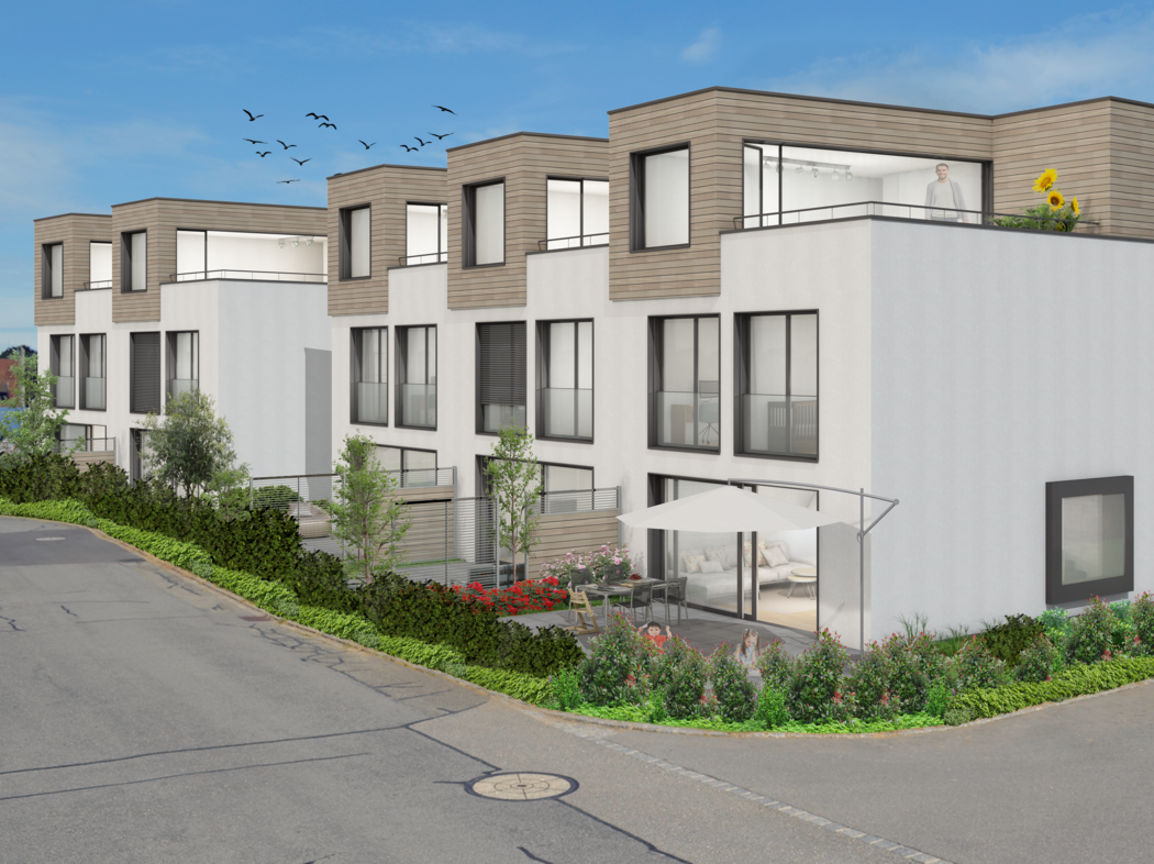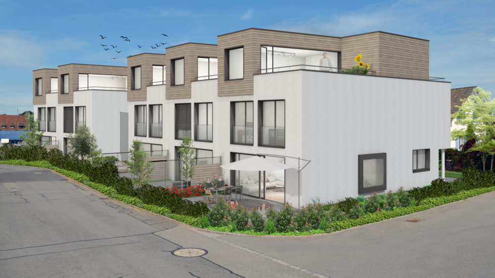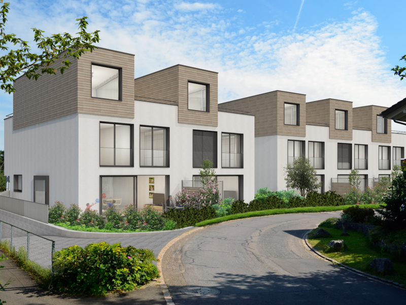 | Projektstudie fünf 5½ Zimmer Reiheneinfamilienhäuser mit Einstellhalle. | |